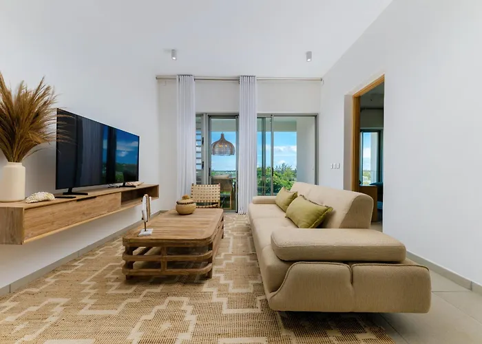 A fully equipped kitchen features an oven and a dishwasher for self-catering. The apartment is located a 60-minute drive from Sir Seewoosagur Ramgoolam International airport.